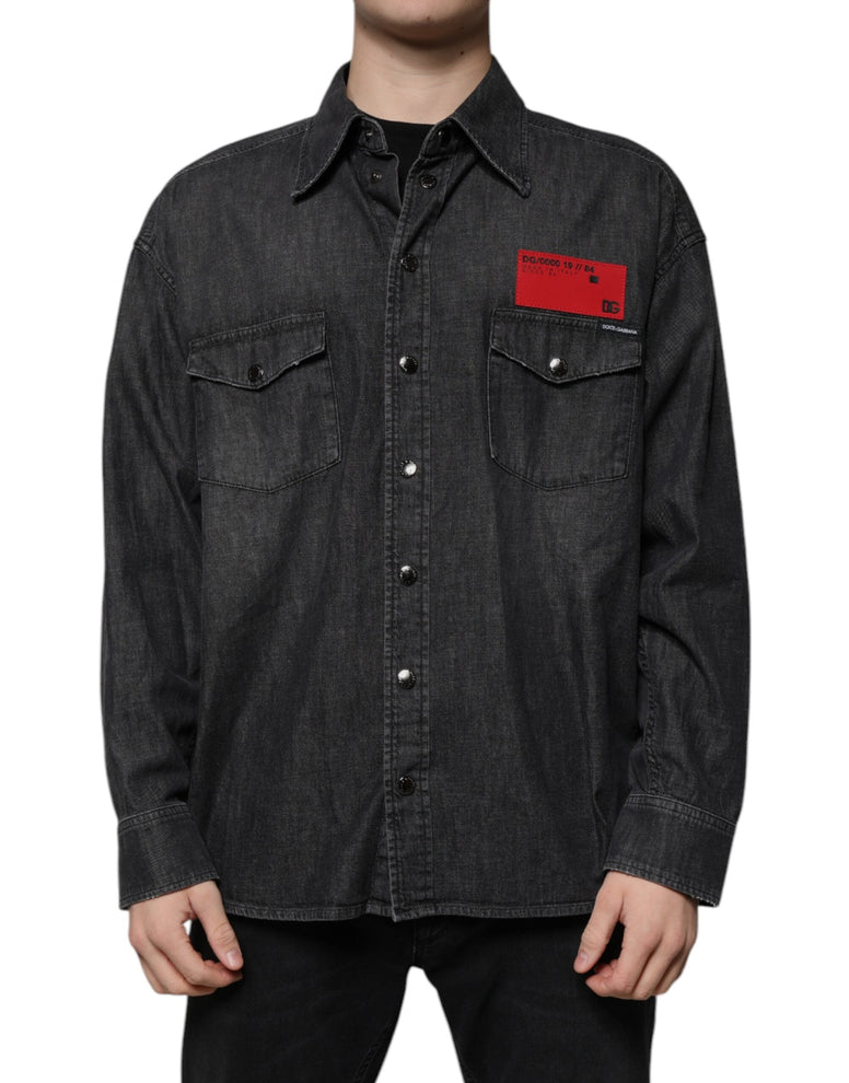Dolce & Gabbana Black Logo Cotton Button Down Denim Shirt Dolce & Gabbana