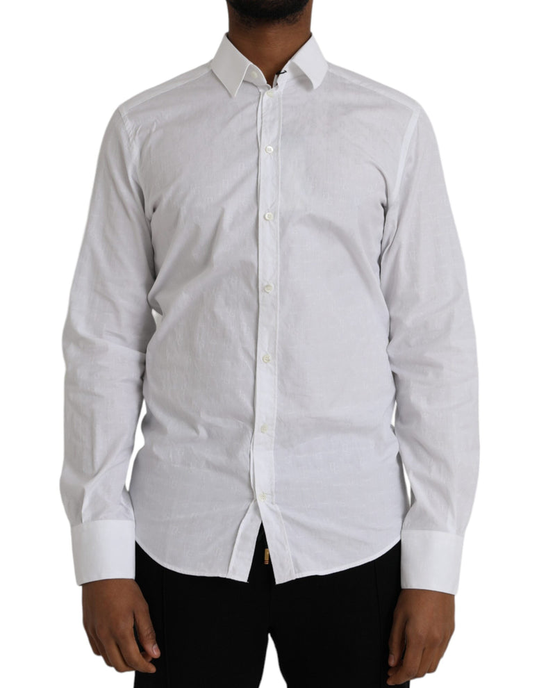 Dolce & Gabbana White Cotton Long Sleeve Dress GOLD Shirt Dolce & Gabbana
