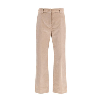 The Marruca Trousers by Weekend Max Mara are crafted from fine cotton corduroy, featuring a slim silhouette with a slightly flared cropped leg. Designed with a high waistband, zip and hook closure, and pressed creases for a polished look. Side slant pockets, double welt back pockets with button, and belt loops complete this refined, versatile piece.