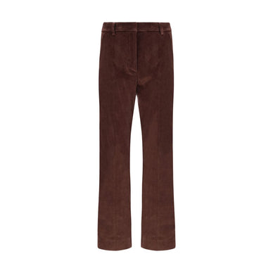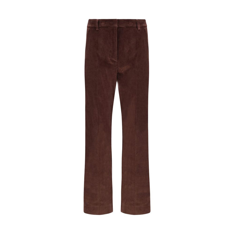 The Marruca Trousers by Weekend Max Mara are crafted from fine cotton corduroy, featuring a slim silhouette with a slightly flared cropped leg. Designed with a high waistband, zip and hook closure, and pressed creases for a polished look. Side slant pockets, double welt back pockets with button, and belt loops complete this refined, versatile piece.