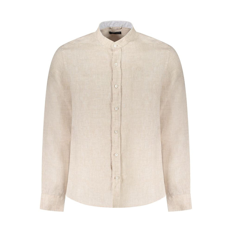LONG SLEEVE SHIRT, KOREAN COLLAR, 1 BUTTON CUFFS, BUTTONS, EMBROIDERY, LOGO, OCEAN POSITIVE