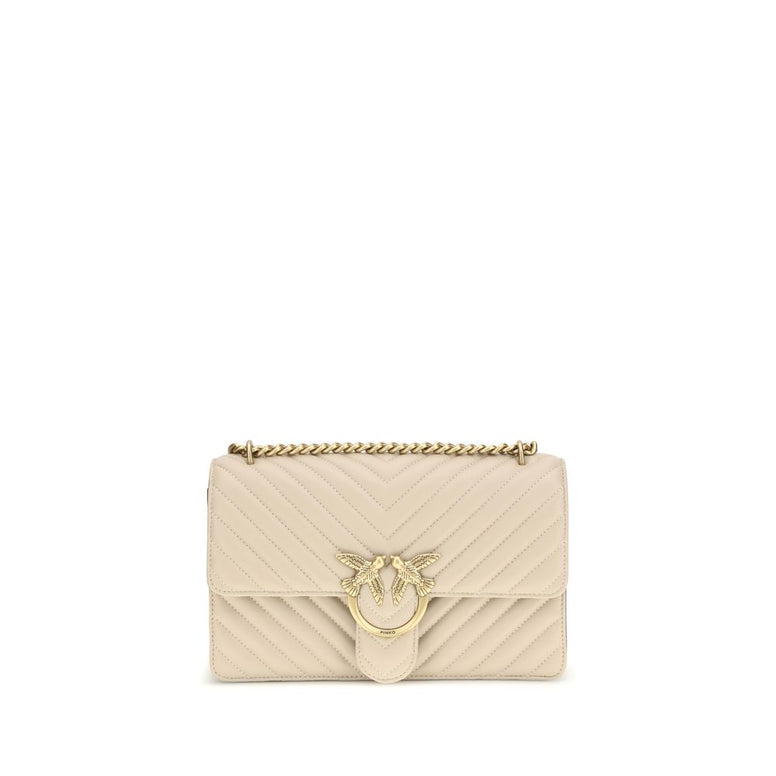 PINKO Schultertasche aus beigefarbenem Kalbsleder, Modell Bos Taurus