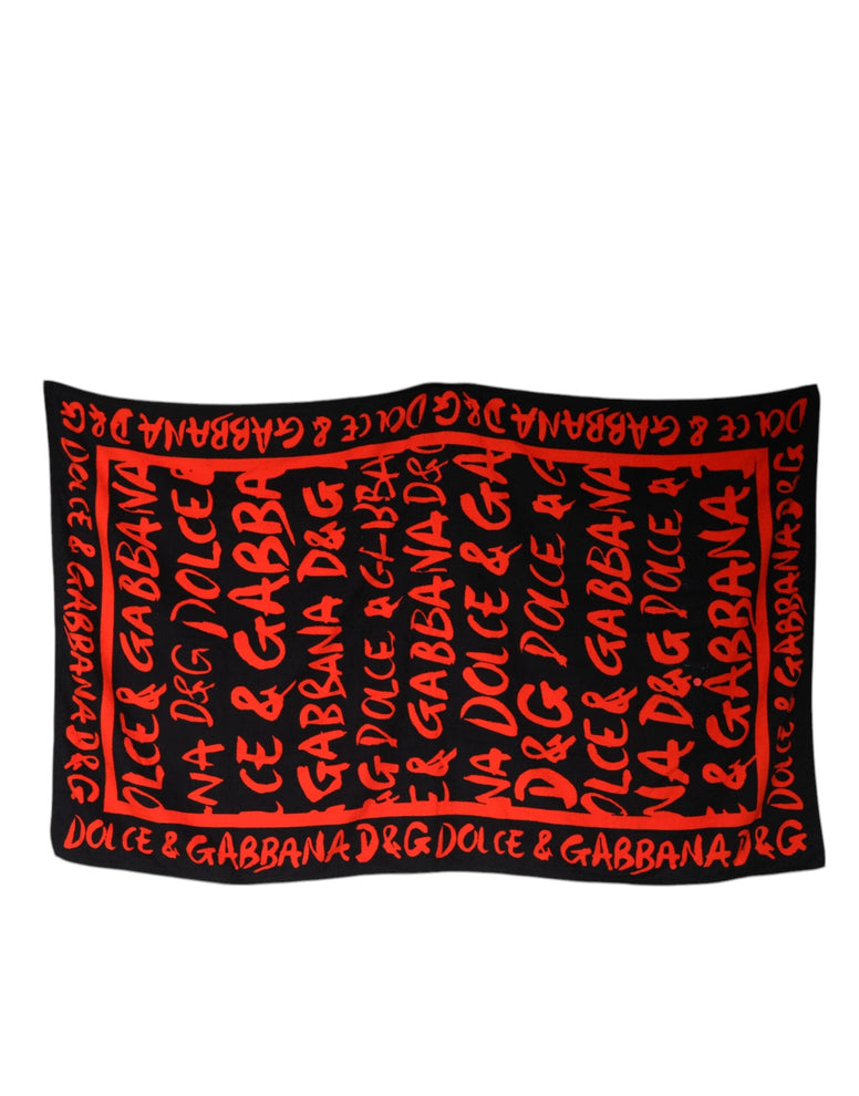 Dolce & Gabbana Black Red Logo Print Cotton Beach Towel Dolce & Gabbana