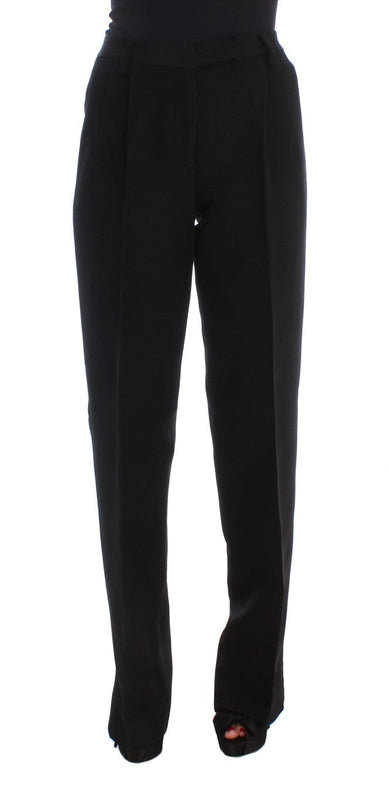 Ermanno Scervino Black Striped Cotton Blend Wide Legs Pants Ermanno Scervino