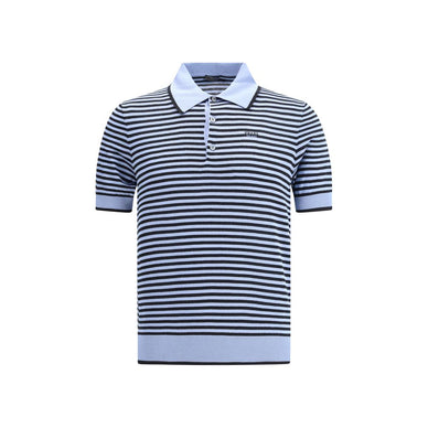 Le polo rayé Prada allie style sportif et détails raffinés. Doté d'un col côtelé et d'une fermeture à trois boutons, il présente un ourlet côtelé pour une coupe impeccable. Le logo jacquard sur le devant signe le vêtement avec une élégance discrète, affirmant l'identité de la Maison.