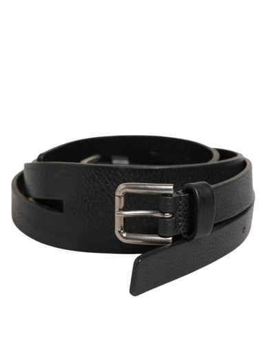 Dolce & Gabbana Black Double Strap Leather Gold Buckle Belt