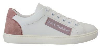 Dolce & Gabbana White Pink Leather Low Top Sneakers Shoes Dolce & Gabbana