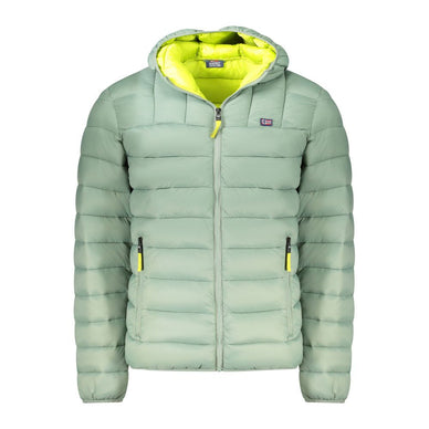 Elevate your outerwear game with this sleek, long-sleeved jacket from Norway 1963, featuring a snug hood and contrasting yellow accents that add a pop of color to the utilitarian green. Crafted with high-quality polyamide, it promises durability and comfort, making it the perfect blend of fashion meets function for the modern man. Complete with two external pockets and a crisp zip closure, this piece is adorned with a bold applique logo for that signature touch of luxury.
